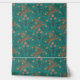 A whimsical pattern featuring leaping brown rabbits surrounded by yellow, pink, and red flowers, green leaves, and dotted accents on a teal background.