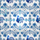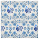 Folk Rooster/Cockerel blue/blue floral ,hearts/4" Fabric