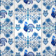 Folk Rooster/Cockerel /blue floral, hearts 4" Fabric