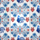 Folk Rooster/Cockerel /blue/red floral, hearts 4" Fabric
