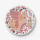 This design inspired by folk art for a paper dish evokes a sense of joy and warmth, perfect for theme parties. The main colors of the design are peach and pink, creating a warm and festive palette