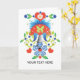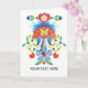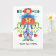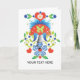 Stylized, Mod and Folksy images on an all-occasion greeting card. A vignette with folksy birds, carnations, daisies, butterflies and hearts for a pretty folksy look on a snow white background. Customize the cover and interior for your custom message or sentiment.