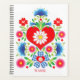 Folksy carnations, daisies, foliage and hearts for a pretty folksy look on a snow white background.