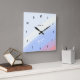 Featuring a soft diagonal gradient of light blue, blue, white, and pink — reminiscent of a serene sunset sky — with sleek black numbers and hands, this clock adds elegance and inspiration to your home or office.