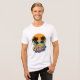 This vibrant and energetic graphic design features the phrase "Summer Vibes" in a dynamic, multi-colored 3D script. The typography is rich with warm yellow, orange, and cool teal tones, accented by playful water droplets and splashes. Above the text, a circular sunset badge showcases tropical palm tree silhouettes against a golden sky and calm ocean. This design is specifically crafted for Men's Tri-Blend Shirts, offering a soft, vintage aesthetic that perfectly captures the essence of a tropical vacation or a relaxed beach day.