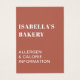 Give your customers up to date allergen and calorie information about your food products with these customizable terracotta product cards. Each featuring your company name and a QR code on the back that links the customer directly to your allergen/ calorie webpage. Generate a brand new QR code using the "personalize this template" option on the product page. Add the URL to your allergen webpage in the box provided and a brand new QR code will appear on your design that links to your URL.