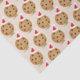Food Christmas tissue paper with a pattern of smiling chocolate chip cookies wearing Santa hats on a light brown background.