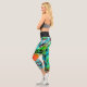 A lively abstract in shades of turquoise, teal, orange, red orange, black, white, metallic gold and green makes these leggings a standout in your wardrobe.