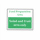 Food prep salad and fruit sticker to indicate the salad and fruit prep area.