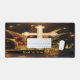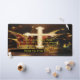 Large golden cross with jester hat and golden crown with typography design.