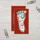A cute and fun foot with colourful cool shapes, dots and lines over a red background.