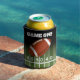 Football game day personalized can coolers for beer and soda cans and bottles featuring a football and field yard lines. Perfect to give to your party host or give as party favours for the big game. Change the placement of the football, the wording, the font, the font colour using the easy Customize further link. MATCHING invitations, plates, napkins, coasters, favour bags and more in our store.