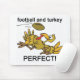 This funny design shows a turkey about to catch a football with the words "football and turkey PERFECT!", great gift for Thanksgiving!
