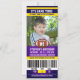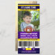 Super fun, football game ticket themed birthday with your little all-star's picture right on the front! In the favorite team colors of purple and yellow with a faux gold foil background on the reverse.