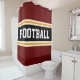 This sporty, athletic design features bold FOOTBALL text inside a highlighted wide black stripe with double white and yellow racing stripes against deep red background stripes. The text in this design can be personalized.
