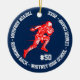 Create a personalized football ornament for your favourite school team player. Features a running football player going all the way to score a touchdown! Add your players team number, championship status, year, school name or other customized text. Black , white and red design is perfect for your holiday Christmas tree.