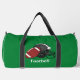 Football Field Ball Helmet Design Duffel Bag with customizable text. Other bag options available in drop-down menu.