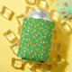 Design is an illustration with orange football shirts, football fan cartoon faces, and footballs. Overall pattern is on a green background. This football design shows the colours of the team you follow. Shirts are in orange gold.