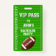 Football themed bachelor party accessory badge with graphics of a green football grid and a brown football. Personalize the white text fields to suit your needs. Great for birthday parties and bachelor parties.
