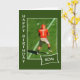Let your son know you're his #1 fan with this birthday card featuring a painting of a football quarterback dressed out in red.