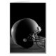 A football helmet is a protective device used primarily in American football and Canadian football . It consists of a hard plastic top with thick padding on the inside, a face mask made of one or more rubber coated metal bars, and a chinstrap. Some players add polycarbonate visors to their helmets, which are used to protect eyes from glare and impacts. Helmets are a requirement at all levels of organized football, except for non-tackle variations such as flag football . Although they are protective, players can and do still suffer head injuries such as a concussion . Each position has a different type of face mask to balance protection and visibility.