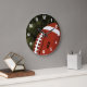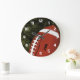 Sports themed wall clock printed with a football on a grunged green and black background and a stenciled font for your monogram or other text.. Your choice of square or round. Great for a kid's or teen's room or the man cave.