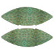 Feathers of a peacock tail are shown close-up and tiled, resulting in a Kaleidoscopic effect. Greens and blues are prominent in the "eyes" of the feathers.