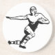 Vintage black and white drawing of a football player holding the ball and running for the goal line while having a hand out to block another player