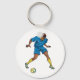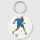 A football player in blue kicking a ball. This design looks really effective on these Keychain