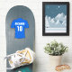 Football sticker. Football shirt design in blue. Personalized with your choice of name and number. Laptop sticker. 8x8 inches.