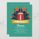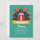 The perfect way to gather friends for the championship game. The teal background features a football with a banner and bursting stars. (FP)