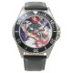 My husband loves the watch, he likes the dial, the graphics, the band, and it keeps perfect time.