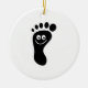 Simple solid black graphic of a human foot print with a happy smiling face. Customize and choose your own background colour. Image available on various gifts and products.