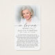 These memorial prayer cards feature the editable beloved Footprints in the Sand poem set against a peaceful beach sunset, paired with a softly faded photo tribute. A simple cross at the top adds a gentle expression of faith, while the shoreline imagery reflects comfort, guidance and God’s presence through every step of life. Thoughtfully designed for a funeral, memorial service or Celebration of Life, these cards offer family and friends a meaningful keepsake honoring a life remembered with love and faith. Small and portable size of 3.5x2" (wallet-sized). Personalization makes these cards unique.