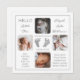 Create a birth announcement that is as unique as your precious child with this "Hello Little One" four photo design featuring your baby's name, birth statistics, parents and siblings' names. In the centre are two template lines for your personal message or you can use ours. This messaging is on top and bottom of your child's optional footprints (add left and right separately). All text and background colours can be modified as desired. Shown here in white. Design by Holiday Hearts Designs (rights reserved) with template placeholder photos via Unsplash.