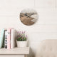 Footprints on a Foggy Beach Large Clock