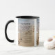 This mug showcases the footprints poem over footprints in the beach shore sand picture background. The rim & handle are glazed in matching colours available in 11-ounce or 15-ounce sizes microwave and dishwasher safe ceramic construction.