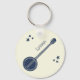 Add a name or other custom text to this keychain to create the perfect personalized gift for banjo players. Features a simple illustration of a banjo in navy blue along with some blue star accents set against a cream coloured background with your text in matching blue lettering.