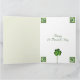 This St. Patrick's Day card features green shamrocks on an ornate green and gold ivy background. Irish Saying... "For each petal on the shamrock, This brings a wish your way... Good health, good luck and happiness, For today and every day." -