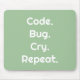 Perfect for programmers and engineers 💻 this sleek mouse pad features "Code. Bug. Cry. Repeat." in bold white on a stylish Mint Green background ✨ Modern, refreshing, and relatable, a design that inspires every coding or engineering session 🎁 Ideal gift for anyone who loves programming, debugging, or all things tech 🖱️ Comfortable & durable, smooth surface for precise mouse movements built for daily use 💡 A witty and thoughtful gift for developers, engineers, and tech lovers alike.