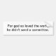 Bumper sticker with the statement "For god so loved the world he didn't send a committee."