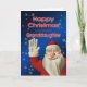 A fun Christmas card featuring Santa Claus waving. Behind him we can see falling snowflakes. A non religious Christmas card suitable for a granddaughter.