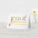 A stylish greeting card for your grandmother, with decorative lettering outline in gold-effect and filled with brightly coloured islamic patterns. The front cover greeting is, 'Eid Mubarak. to my dear Grandmother' There is a brightly coloured lantern in the bottom left corner, hanging underneath the letter 'E' and a patterned moon and star in the top right hand corner, with two more lanterns and an Islamic Star suspended from the moon. The white background on the front cover is lightly textured and the inside message is just a suggestion which you can easily change or delete if you wish.