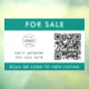 A simple "For Sale" QR code real estate vinyl window cling decal sign in a modern minimalist style with a vibrant green colour. The agent details and other text can be customized for any sale including the easy upload of your agency logo and QR code for the property listing (house, lot or land for sale). #realestate #QRcode #forsalesign