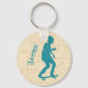 Create a small personalized gift for your favourite skater or a skateboarding themed party favour. This keychain features a silhouette style illustration of a skateboarder in turquoise blue set against a faux woodgrain background.