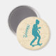 Create a small personalized gift for your favourite skater or a skateboarding themed party favour. This magnet features a silhouette style illustration of a skateboarder in turquoise blue set against a faux woodgrain background.