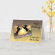 Two black stallions rearing at each other with a glorious sunset in the background. A great card for a horse lover.