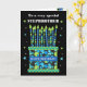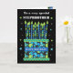 A bright birthday card for your stepbrother, with lots of patterned candles on a birthday cake. At the top of the front cover, the words, 'To a very special STEP BROTHER' are in a white lettering on the black background. There is a blue band around the cake with 'HAPPY BIRTHDAY!' also in white. Tiny blue, green and white stars are scattered around the black background and the inside verse is just a suggestion, which you can easily change or delete if you wish.