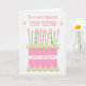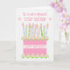 A very pretty birthday card for your stepsister with a pink birthday cake with lots of patterned candles. The cake is pink, with a polka dot pattern and decorated with clusters of pink, Albertine roses, painted by hand in watercolour. 'Happy Birthday!' is written in matching pink on a white band around the cake. Above the candles, it says, 'To a very special STEP SISTER with a tiny pink heart at each end of the word, 'STEP SISTER'. The inside message is just a suggestion and you can easily edit it or remove it, if you wish.