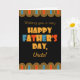 A stylish Father's Day greeting card for your uncle, in an Art Deco style. The front cover greeting is, 'Wishing you a very HAPPY FATHER'S DAY, Uncle!' in bright red, blue and golden yellow on a black background. There are curved Art Deco patterns at the top and bottom and the inside message is just a suggestion which you can easily change or delete altogether if you wish.